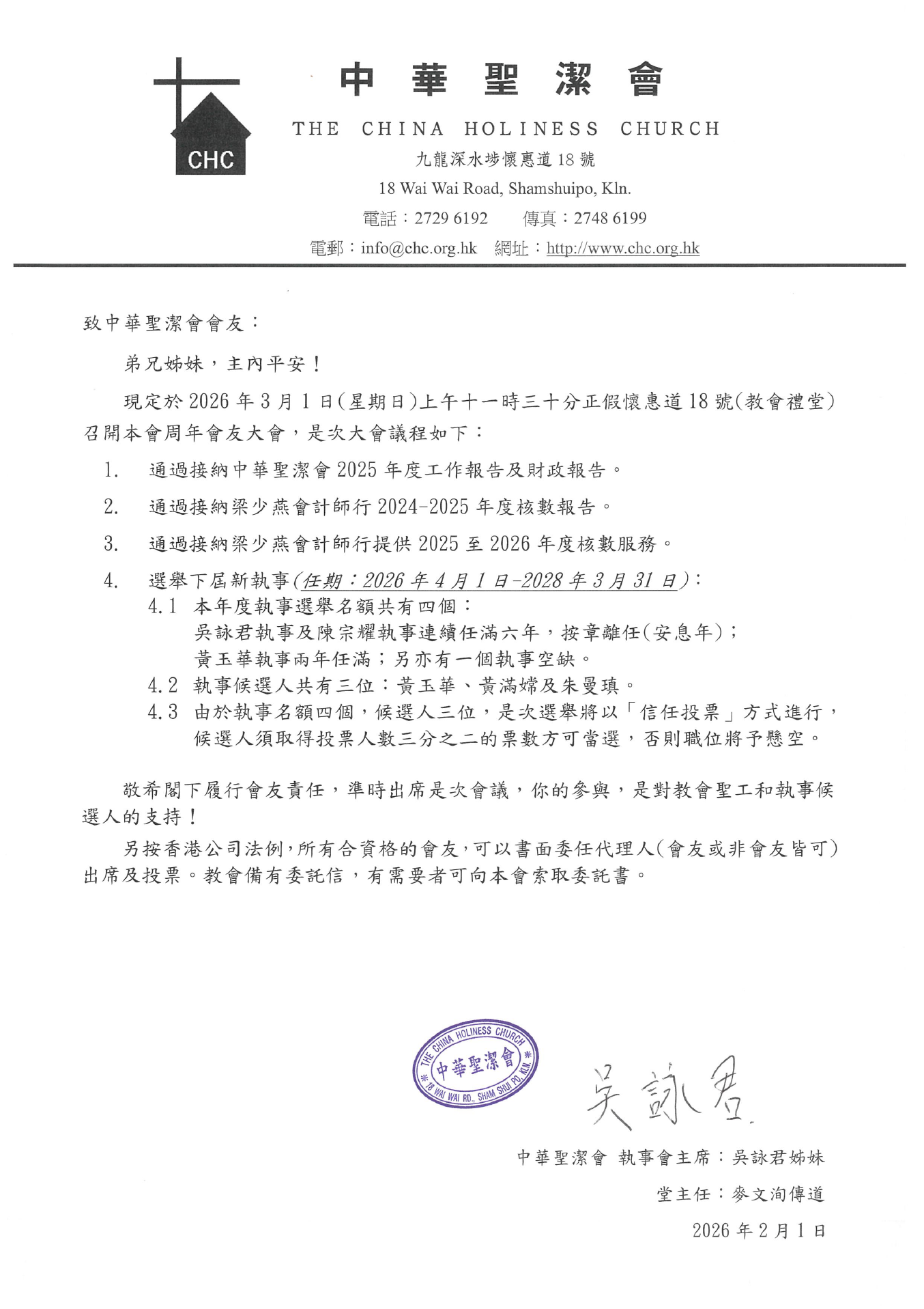 會友大會通知函